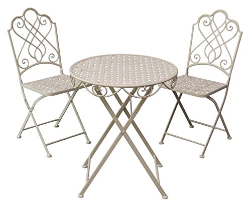 PRODUCT DESCRIPTIONS:This folding tea set for two is the perfect addition to your garden this summer. Enjoy your garden even more this year with this classic dining set! It boasts a sturdy steel frame and a powder coated finish (not painted). The stylish cream colour adds a great vintage feel to any garden.