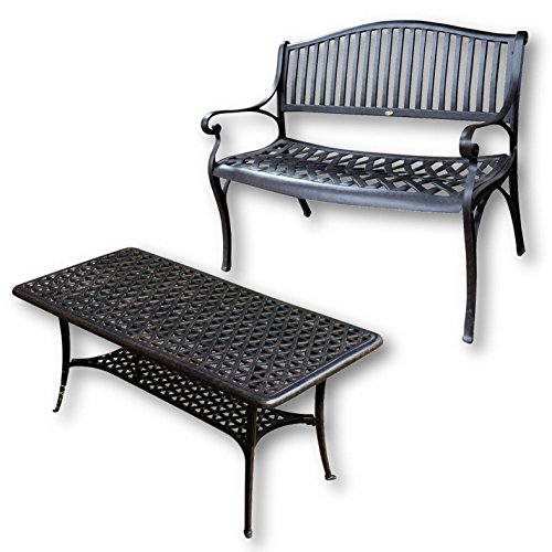Dimensions of the Grace bench: - Length: 103 cm - Width: 60 cm - Height: 85 cm - Weight: 14 kgThe Claire coffee table is also made from cast aluminium, and is one of our most useful pieces of garden furniture due to its versatility. It can be used as a side table for drinks, or used as a two person table for that sunny corner in your garden.