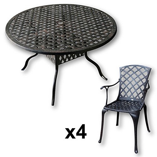 PRODUCT DESCRIPTIONS:The Sarah 4 seater set is a classic metal patio set made of high quality sand-cast aluminium and is totally weatherproof.
