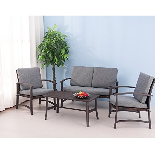 Excellent Choice BTM Rattan Garden Aluminum 4 seater outdoor furniture set conservatory patio sofa set outdoor wicker chairs sofa table No rust (Brown) - 13 Cheap Products That Make Life Easier
