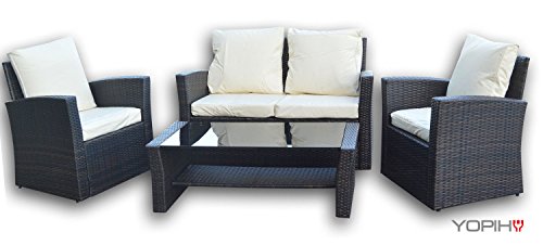Purchasing Luxury Rattan Aluminium Garden Furniture Sofa Set Outdoor Wicker with Glass Table black + upholstery + 4 Extra Pillows, stainless steel screws By Yopih - 7 Cheap Products That Make Life Easier