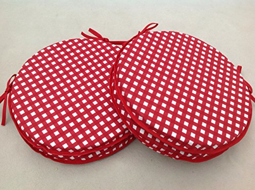 Luxury SET OF 4 RED GINGHAM PATTERN 14" ROUND BISTRO STYLE CHAIR SEAT PADS - The Best Cheap Product