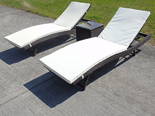 PRODUCT DESCRIPTIONS:This luxury high quality rattan sun lounger is taken from the Madrid range and is available in dark mixed brown . The set consists of a x2 FULLY assembled sun loungers, thick base cushions and a one glass coffee table table. All our items are suitable for any indoor or outdoor living space. Made from fully weatherproof PVC rattan, this maintenance free set is designed to be left outdoors all year round without the need for covering. The set can be easily washed with a hose pipe. It is also UV light resistant to ensure that the rattan does not fade in sunlight The covers are easily removed for washing but we recommend that they are kept in side when not in use. The cushions are UK fire and flame resistant, making them perfectly safe for both indoor and outdoor use. The postage price is mainland uk only.