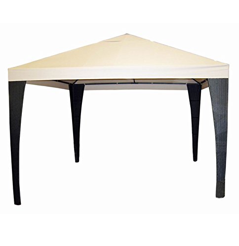 PRODUCT DESCRIPTIONS:This rattan gazebo is the perfect stylish addition to enjoy your outdoor parties, BBQs and celebrations. It will provide a good shelter from sunlight or light shower while also acting as an impressive piece of decoration which will amuse your guests. In its 6.1 square meters it can easily accommodate a 4, 6 or even 8 seater underneath for the perfect dining experience in the comfort of your patio or garden. This beautiful outdoor gazebo is made of first-quality flat black rattan, with steel frames for improved stability and resistant 180 gr/m2 cream polyester for the canopy. Please note: This Gazebo matches and is suitable for use with our extensive range of rattan Daybeds, Sun loungers and Furniture sets.