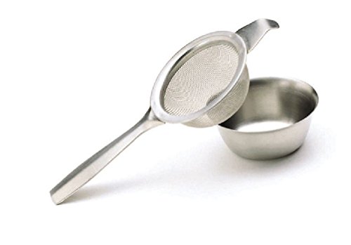 PRODUCT DESCRIPTIONS:This new Kitchen Craft Stainless Steel Tea Strainer with Drip Bowl 1 Arm is perfect Tea Strainer complete with drip tray in stainless steel.Extremely useful for any loose leaf tea and the addition of a drip bowl means less mess for you. This handy little item is light enough to pack when going away so you don't need to be without your favourite tea on holiday.used 3 to 4 times each so save your leaves in the strainer until next needed and your leaves are there ready to infuse again and again with little fuss or effort.This handy little item is light enough to pack when going away and gives you back some of the flexibility of teabags when using loose leaf tea.FeaturesKitchen craftTea strainerWith Drip BowlFine mesh stainless steel gauzeResting hook and flat handle for securePosition on cup and mug rimsThe tea strainer is 2" wide and 5.5" long