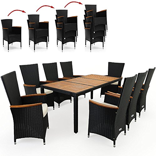 PRODUCT DESCRIPTIONS:This exclusive rattan set consist of 1 table, 8 chairs with 8 thick, removable seat cushioons (double linked).
