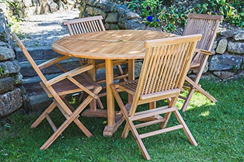 The Best Place To Buy Solid Teak 1.2m Circular Pedestal Garden Table and Folding Chair Set (Combo) Online