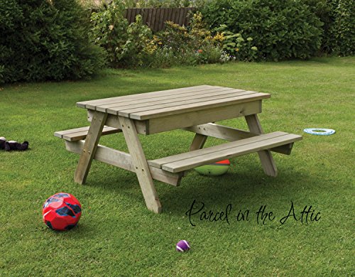 PRODUCT DESCRIPTIONS:Children love to be outdoors and, with our Picnic And Play Table, they will be occupied for hours. With seating for four children, it comes with a removable lid and storage. The storage section can be used as a sand-pit to offer even more playtime fun! This is an FSC product, guaranteed against rot for 10 years.