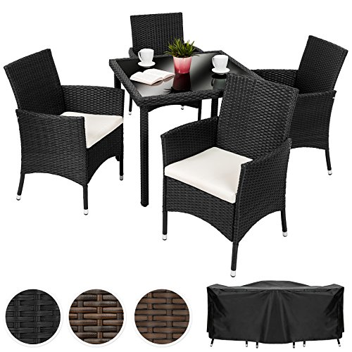 Cheap Price TecTake 4 Chairs + 1 Table Luxury Rattan Garden Furniture Set | Includes protection slipcover and stainless steel screws - Special Product Of The Year