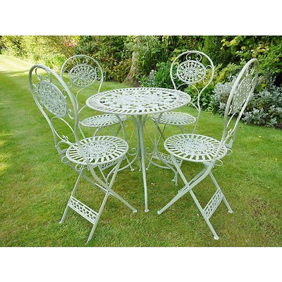 Vintage Style Ornate Iron Garden Table And Four Chairs Antique Green Colour