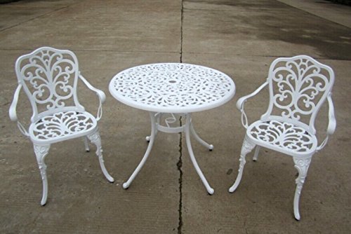 The Best Place To Buy White Cast Aluminium Table & 2 Chairs Bistro Garden Patio Courtyard Set Online