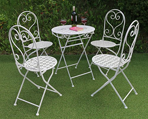 PRODUCT DESCRIPTIONS:Daisy Flower White Metal Patio Table & 4 Folding Chairs This is a well designed good looking metal set. Chairs and table fold for easy storage when not in use. The well proportioned chairs complement the table making this an attractive addition to any garden Suitable for indoor and outdoor use, superbly designed and ideal for conservatories or patios. Approximate Size: Table: Height:70cm Diameter:60cm Chair: H:94.5cm W:44.5cm Seat Height 39cm Colour may vary slightly due to lighting conditions when photographed. PLEASE NOTE: WE DO NOT DELIVER TO - Scottish Highlands/Northern Ireland/Channel Islands & Outlying Area Addresses See Detailed Seller Information