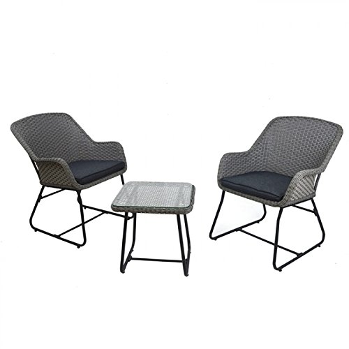 PRODUCT DESCRIPTIONS:This 2 seater bistro is made of durable powder coated steel frames, textilene weave and a glass table top. In a grey weave finish, this set is a perfect size for your patio or balcony and will allow you to relax in style. Easy to maintain; wipe clean with mild detergent. Cushions should be stored indoors when not in use. Glass top should be stored indoors in bad weather. Some assembly required, all fixings supplied.