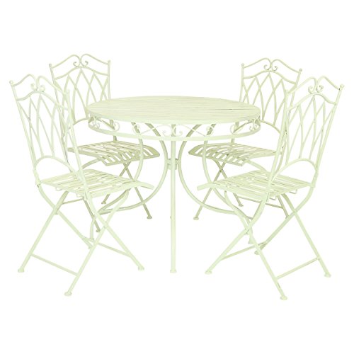 PRODUCT DESCRIPTIONS:This stylish furniture set will suit perfectly in your garden, patio or deck, adding a touch of distinction to your outdoor area. This set is finished in a lovely pastel shade and the curved design on the chairs and table is so elegant that you'll have every guest asking you about them. For your comfort the chairs are fully foldable, so they don't take up much space when not needed. The antirust finish on this garden furniture set guarantees a long lifespan, helping it withstand all outdoor weather conditions.