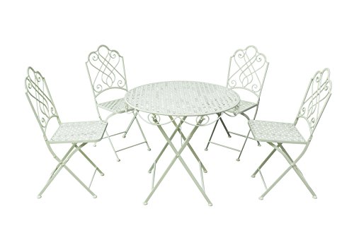 PRODUCT DESCRIPTIONS:This metal garden bistro table and chairs set by Gardman is perfect for balconies, patios and gardens of any size. Petite but sturdy, the powder coat finished steel table and chairs are easy to fold away and store, or simply move to another part of the garden should you wish. Chairs are weight tested to 120kg.