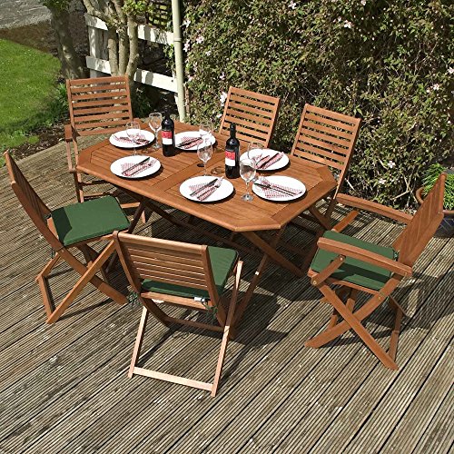 If you're a customer who loves great deals and cheap prices then you're sure to find the product that's best for you! 7 Piece Hardwood Eucalyptus Wood Garden Furniture Set 6 Seater Outdoor Patio Dining Table and Chairs with Green Cushions is a best seller, cheap and high quality product.You can buy 7 Piece Hardwood Eucalyptus Wood Garden Furniture Set 6 Seater Outdoor Patio Dining Table and Chairs with Green Cushions from The Largest Online Shopping Sites by following the link below..