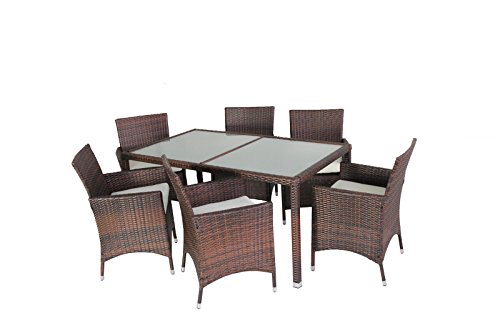PRODUCT DESCRIPTIONS:Evre Rattan Outdoor Dining Set - Glass Topped Table & 6 Chairs - Brown