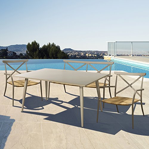 Excellent Choice Oseasons® Milos Rattan & Aluminium 4 Seater Sofa Dining Set in Light Taupe - Trending Hot Products