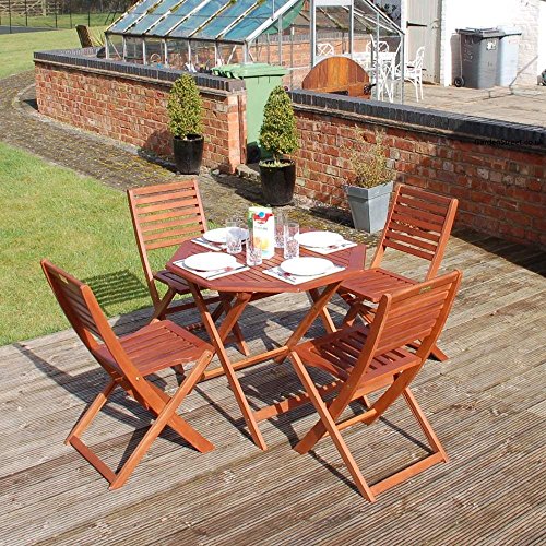 PRODUCT DESCRIPTIONS:Why Choose The Plumley Octagonal Set?The Plumley Octagonal Dining Set is the perfect product for dining in smaller outdoor spaces. Able to seat up to 4 people, the set perfectly combines the traditional design with a contemporary appeal. When not in use, the chairs can be easily folded, giving you a great space saving storage solution. You will make the most of those long summer evenings with this set as it is the ideal outdoor furniture to enjoy socialising and dining Al Fresco. The stained hardwood of the Plumley set is not only stylish, but extremely durable too and it will be sure to bring you many years of enjoyment.