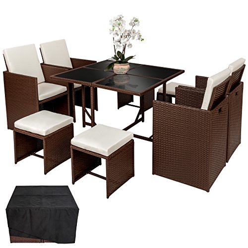 Brand Name TecTake Rattan Garden Dining Cube Set 4+4 Seats + 1 Table | incl. Protection Slipcover | Stainless Steel Screws | Mixed brown - 24 Cheap Products That Make Life Easier