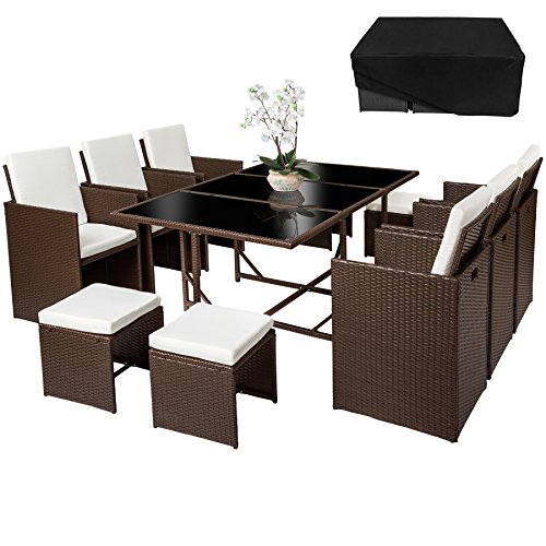 Excellent Choice TecTake Rattan Garden Dining Set 6+4 Seats + 1 Table incl. Protection Slipcover | Stainless Steel Screws | Bron Mixed - 22 Cheap Products That Make Life Easier
